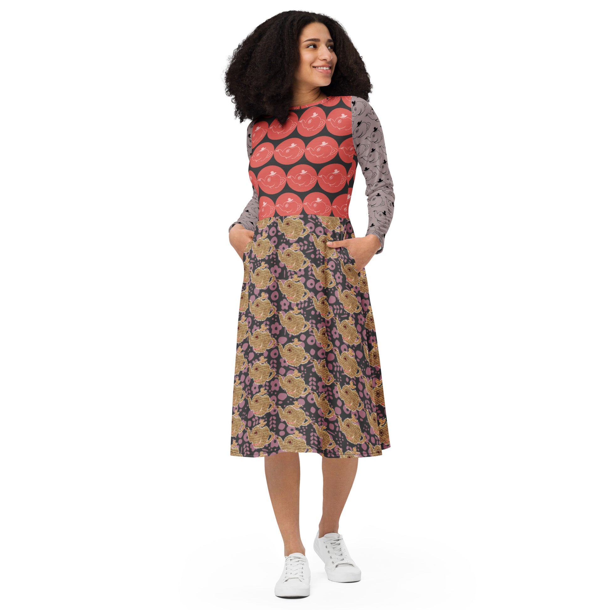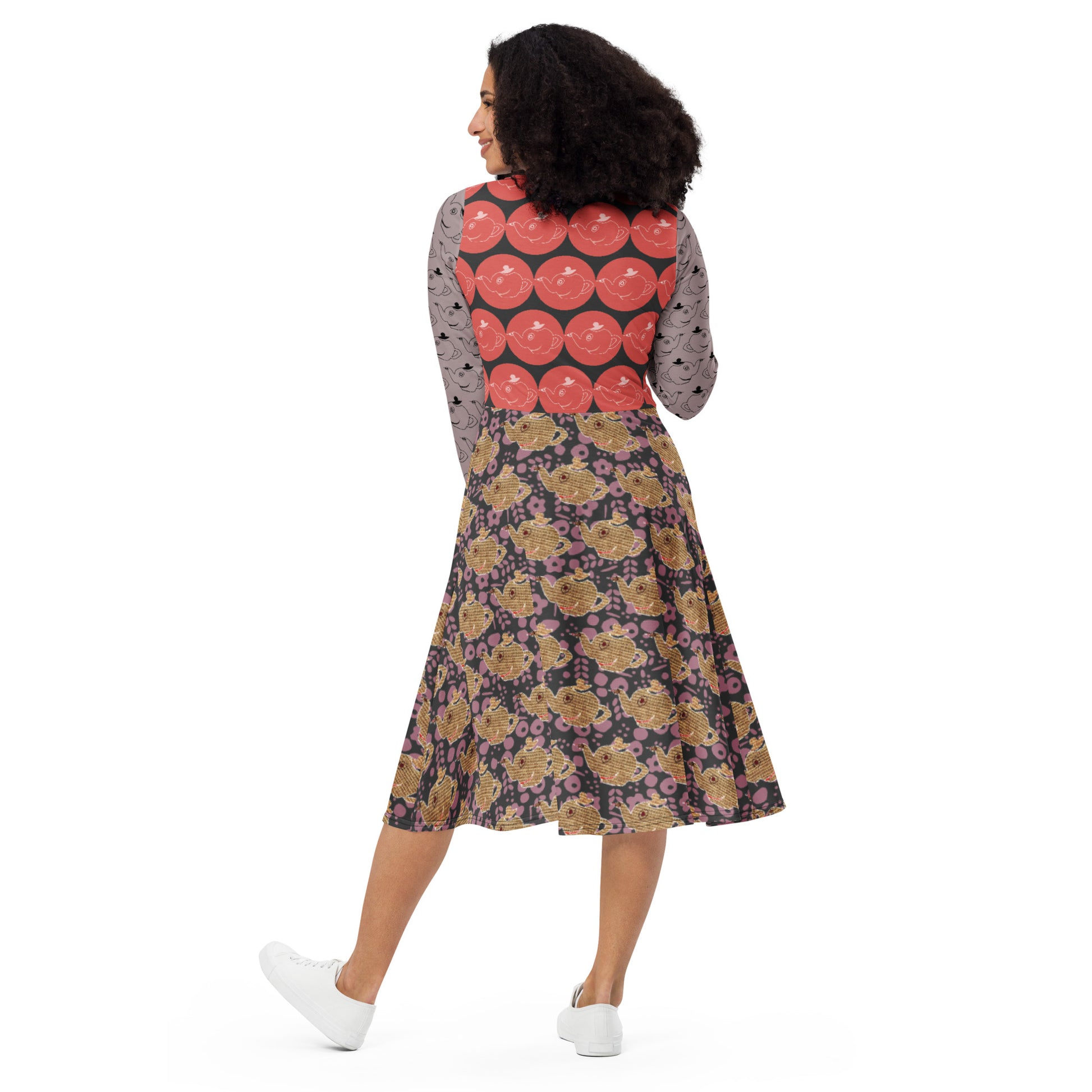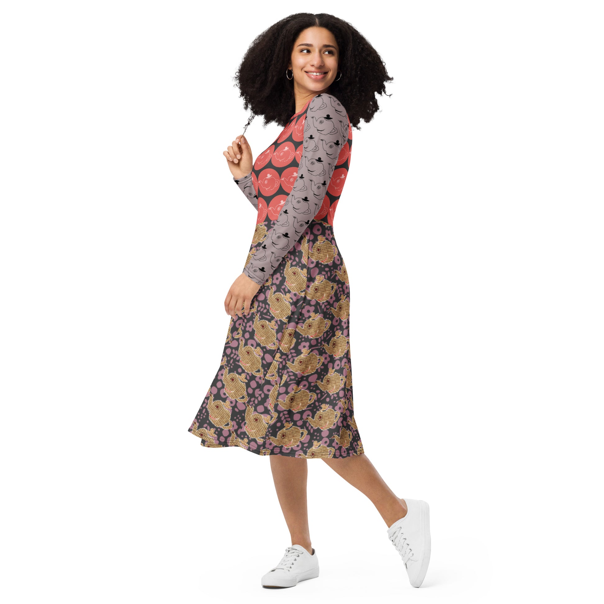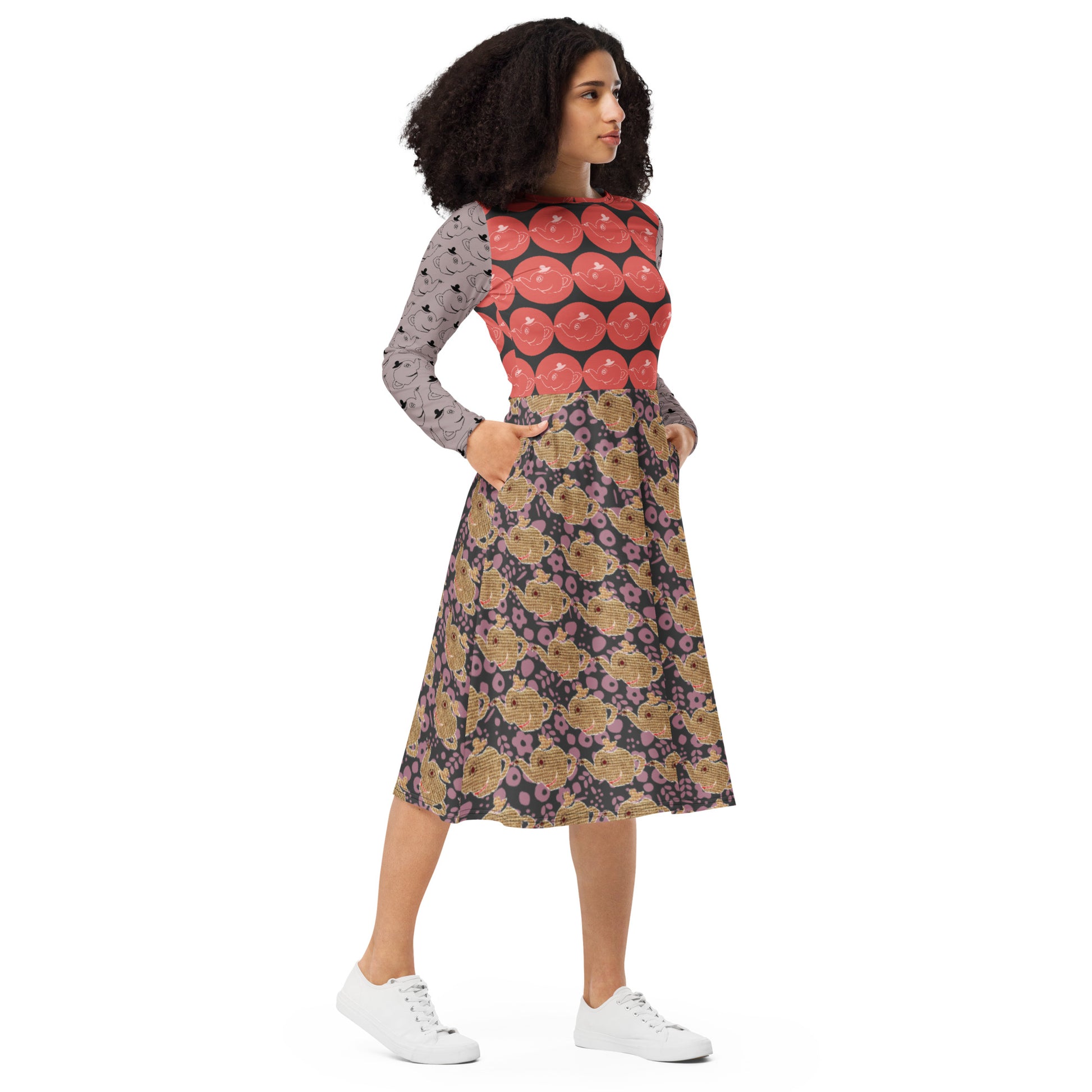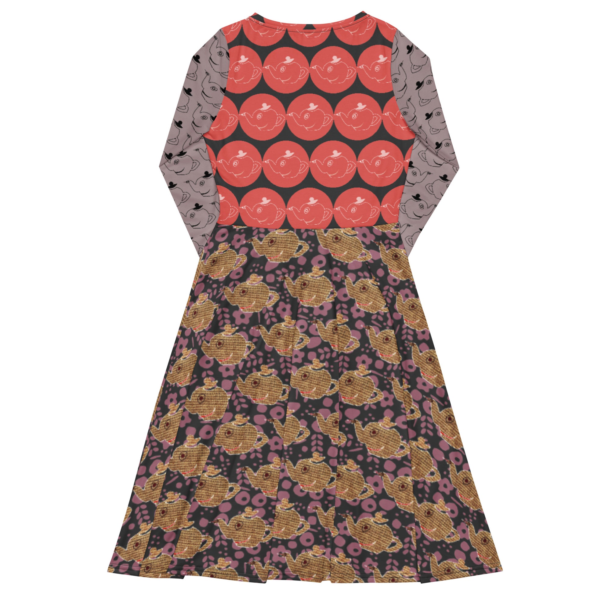 全面プリント長袖ミドルワンピース・ロピュズカフェ(TEABREAKER)MIX【LC002- MOP005】