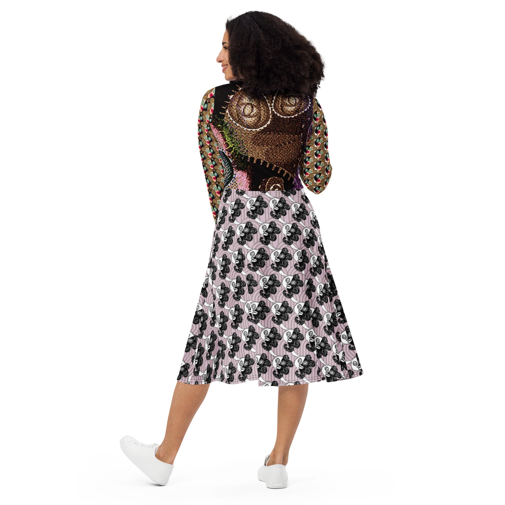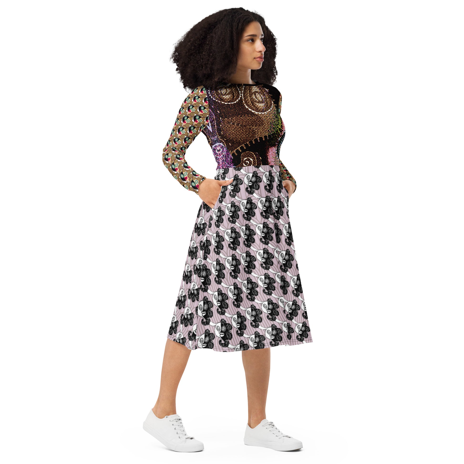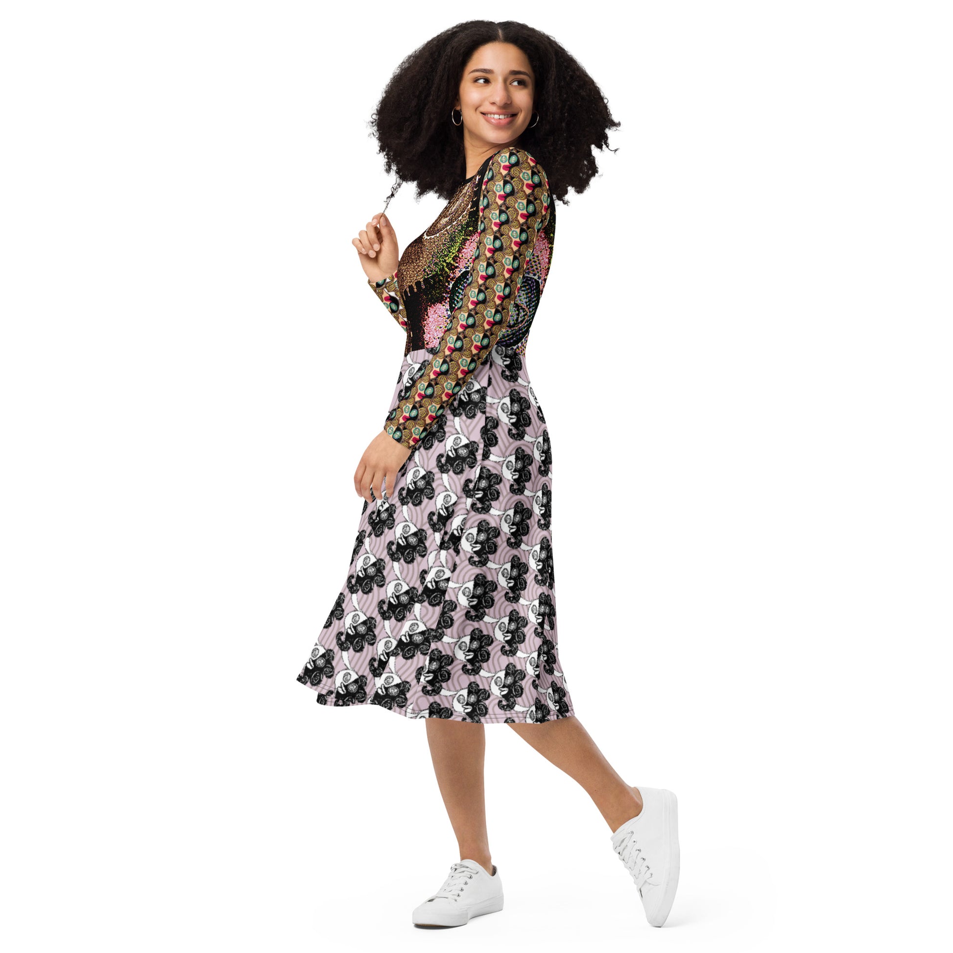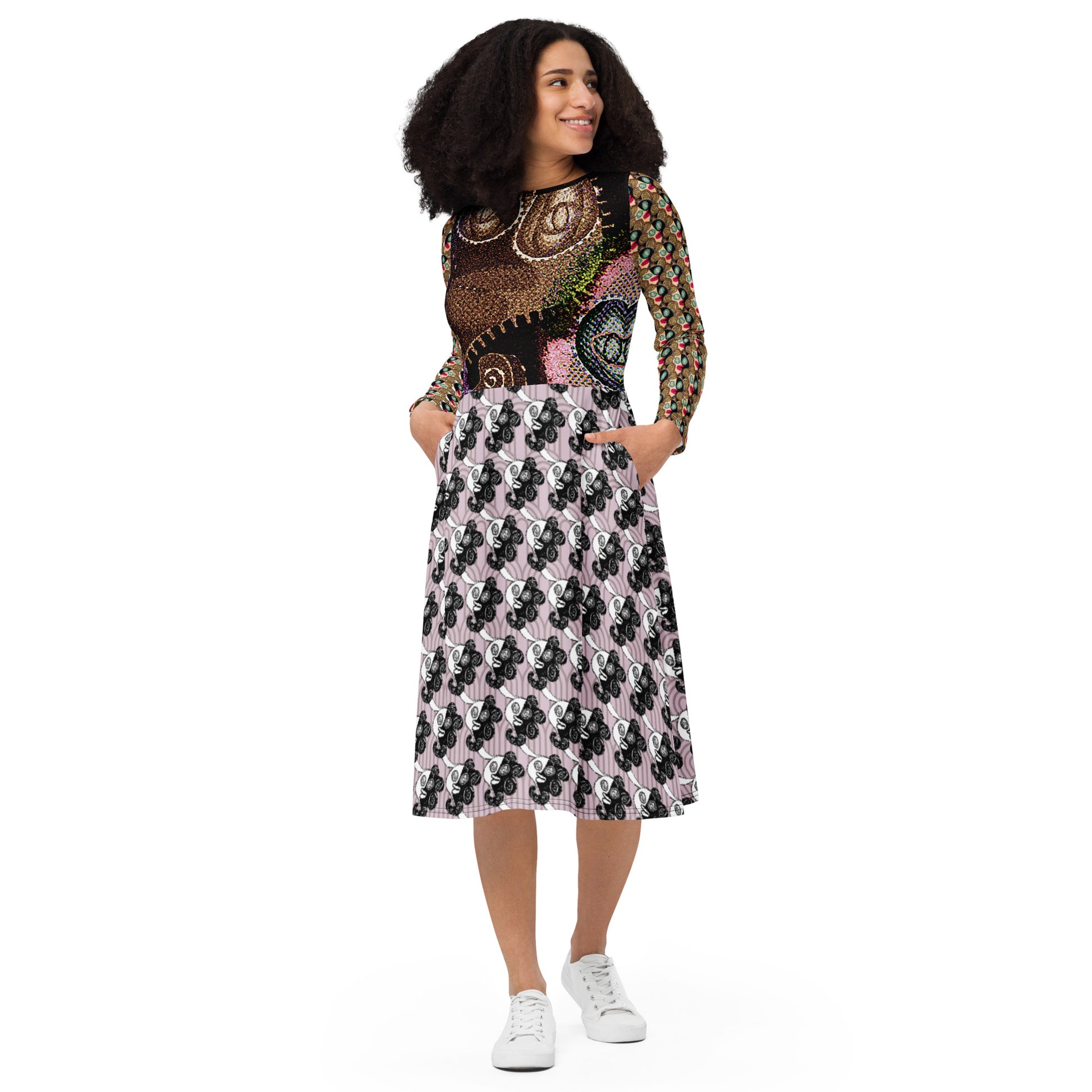 全面プリント長袖ミドルワンピース・ラメ子MIX【CA002- MOP007】