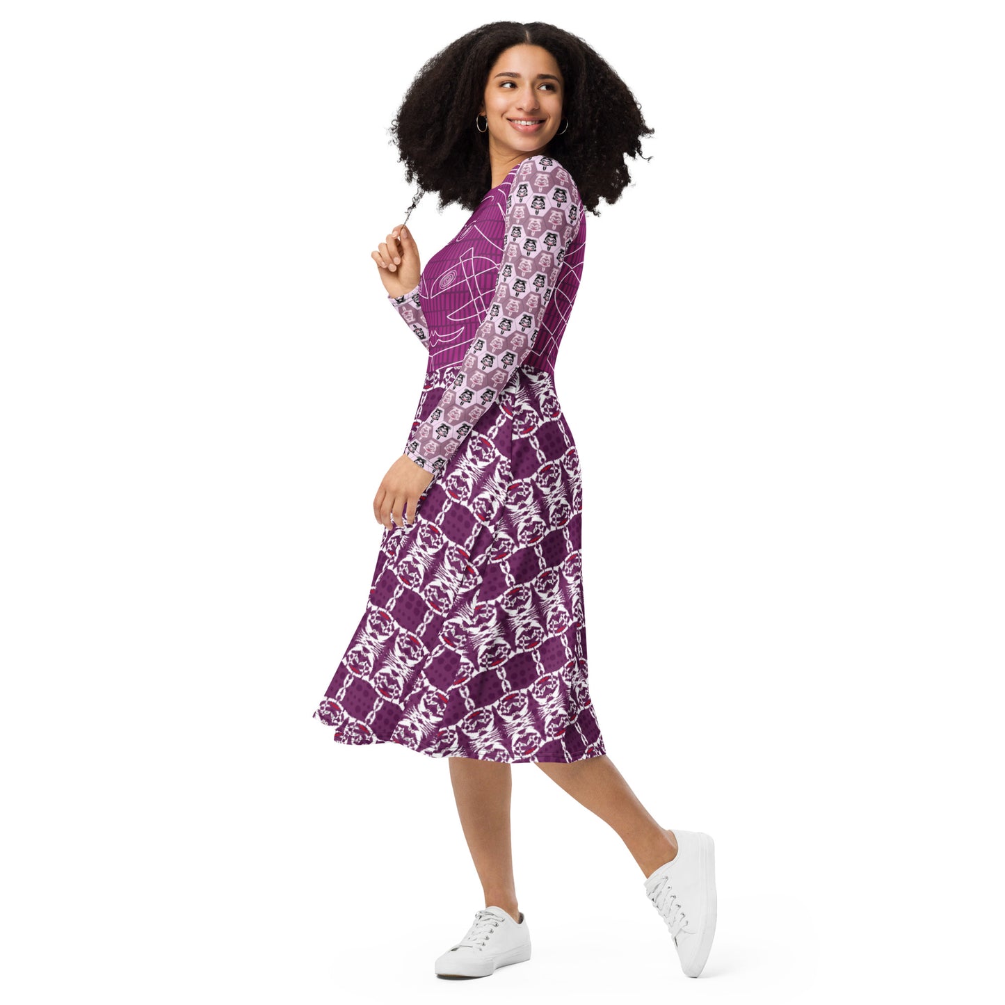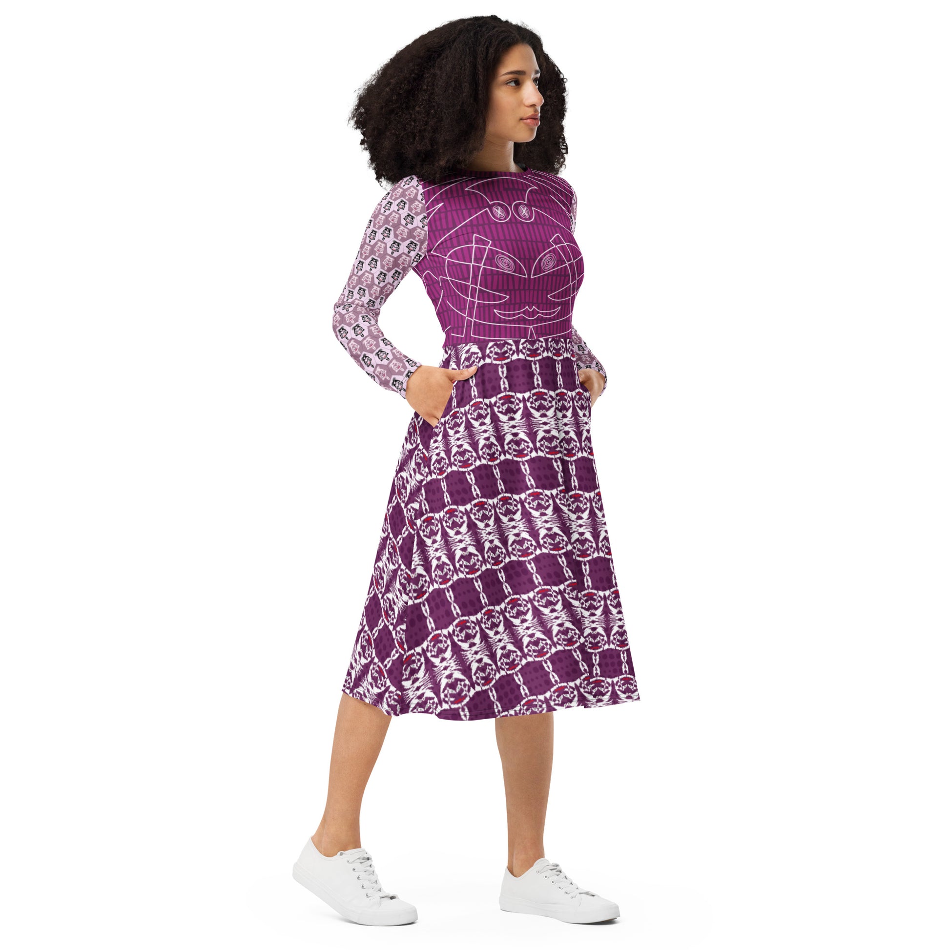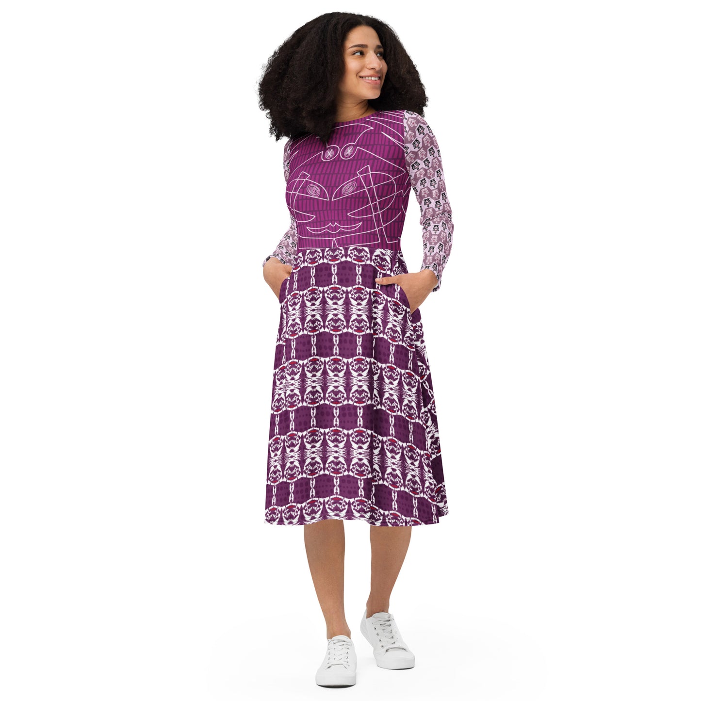 全面プリント長袖ミドルワンピース・ボクちゃんパープルMIX【CA003- MOP009】