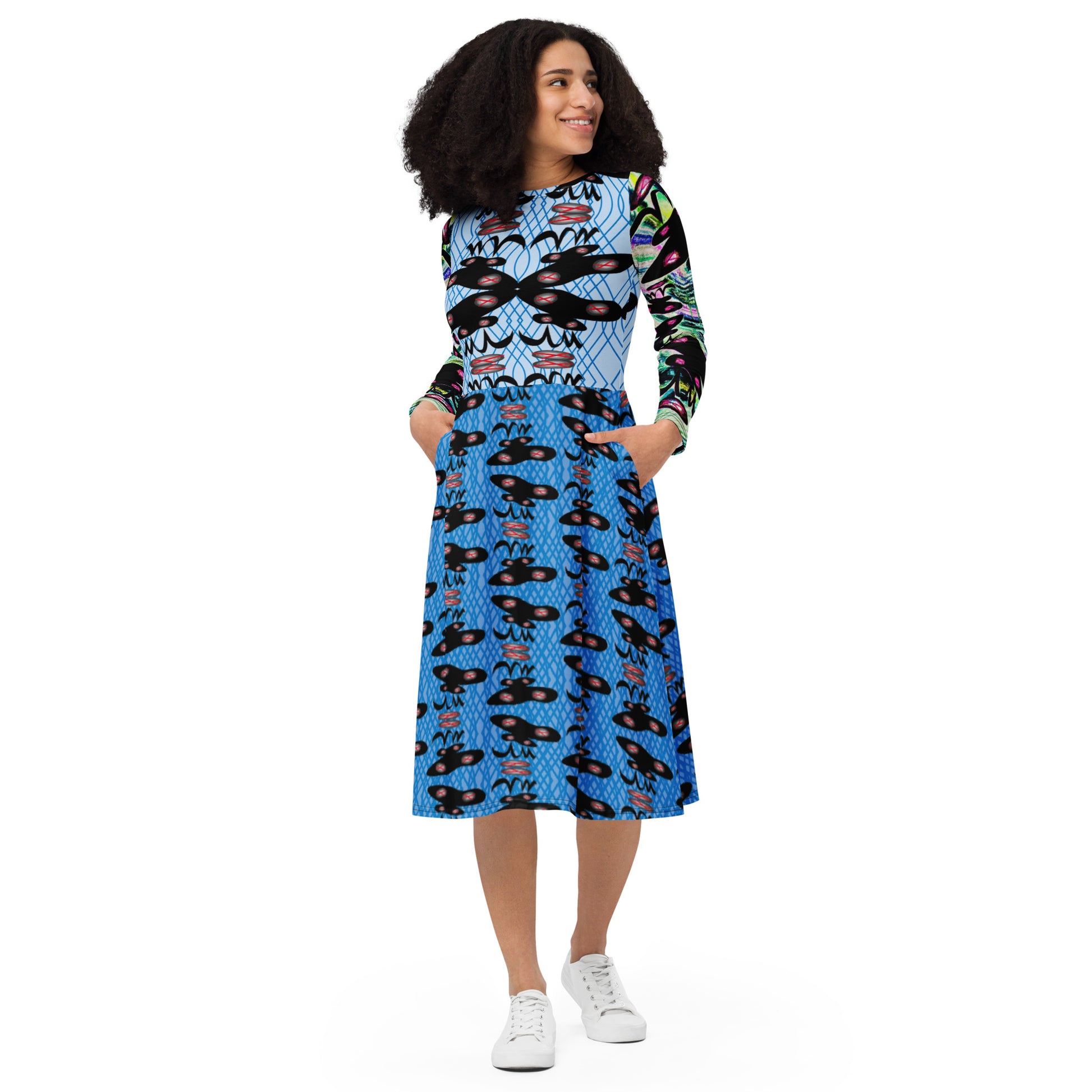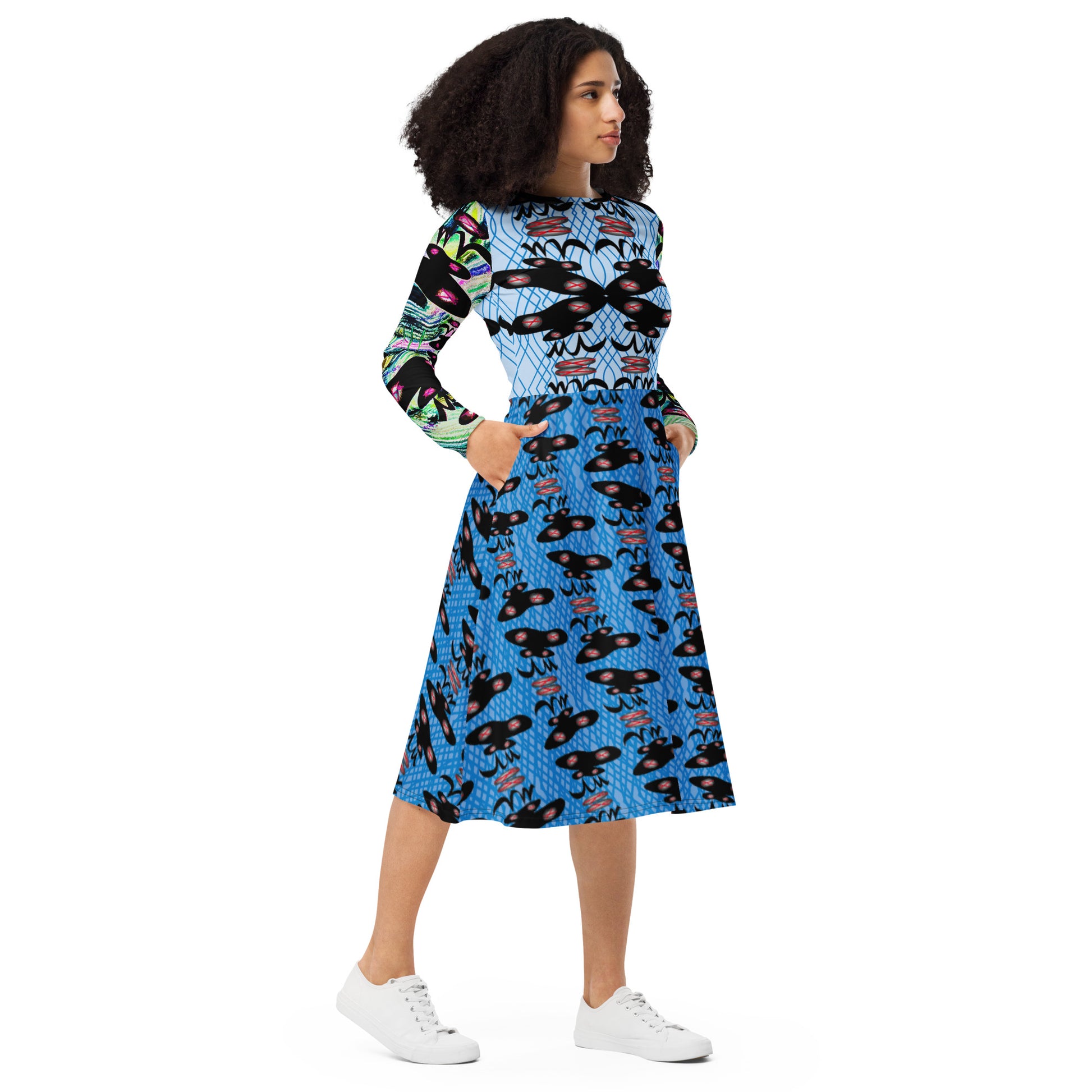 全面プリント長袖ミドルワンピース・ダダMIX【CA014- MOP010】