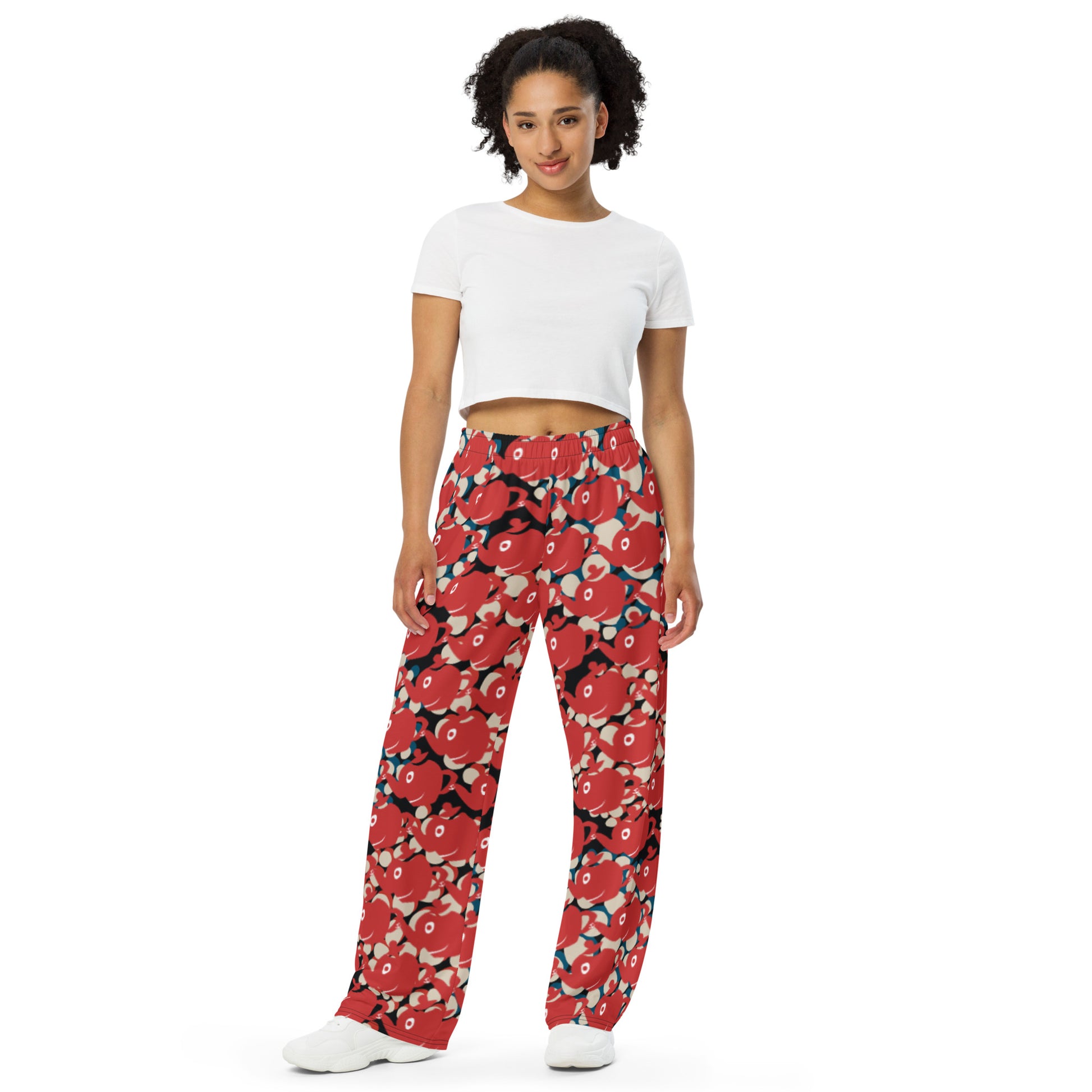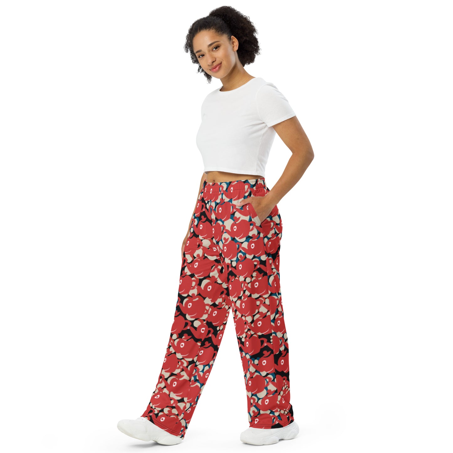 全面プリント ユニセックス ワイドパンツ全面プリント ユニセックス ワイドパンツ・赤ティーブレーカーモダン【LC001- UWP027】