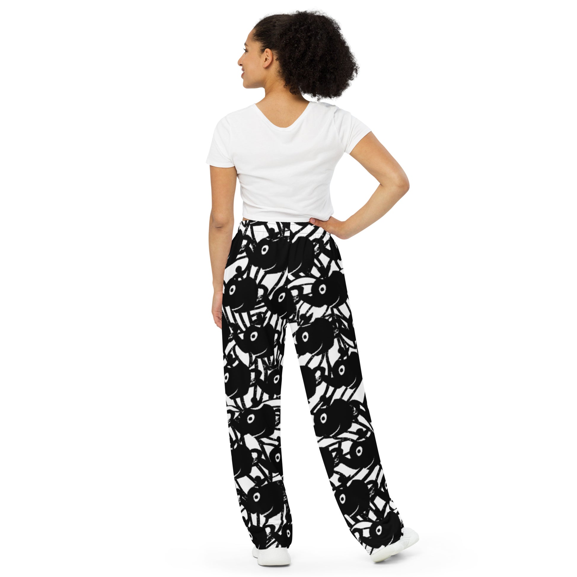 全面プリント ユニセックス ワイドパンツ・黒ティーブレーカーモダン【LC001- UWP026】