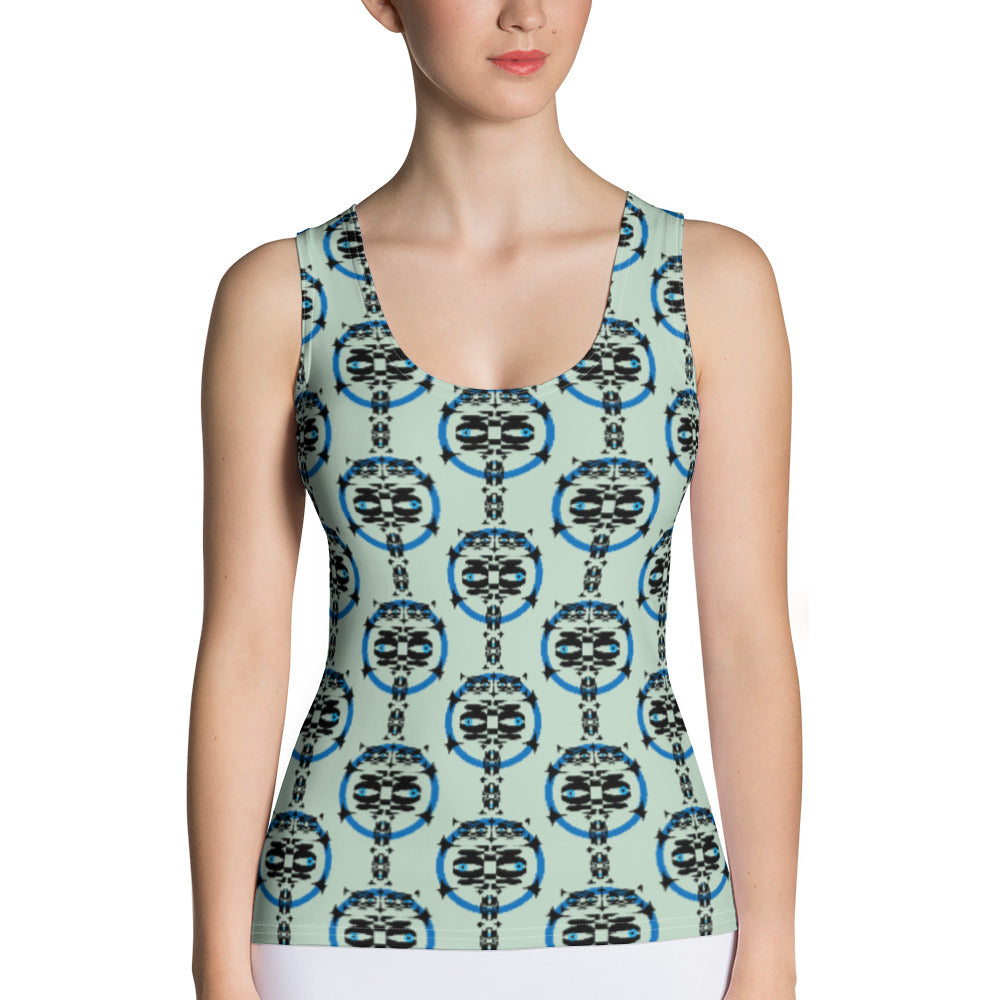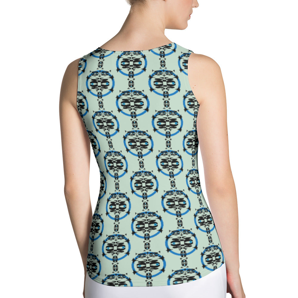 昇華プリントカットソータンクトップ・青輪イジドール模様薄緑【CA001- CSTT002】