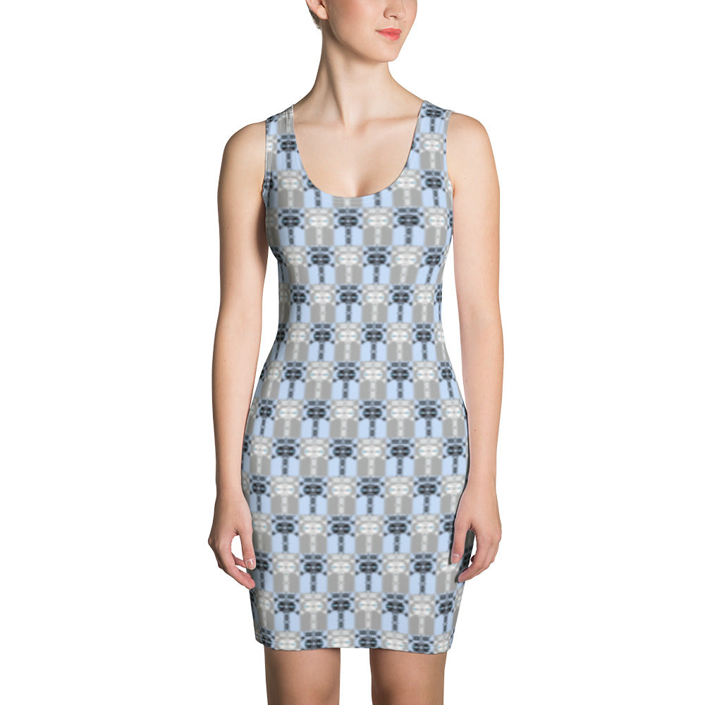 全面プリントのぴったりフィットのワンピースで大胆な着こなしを楽しみましょう。