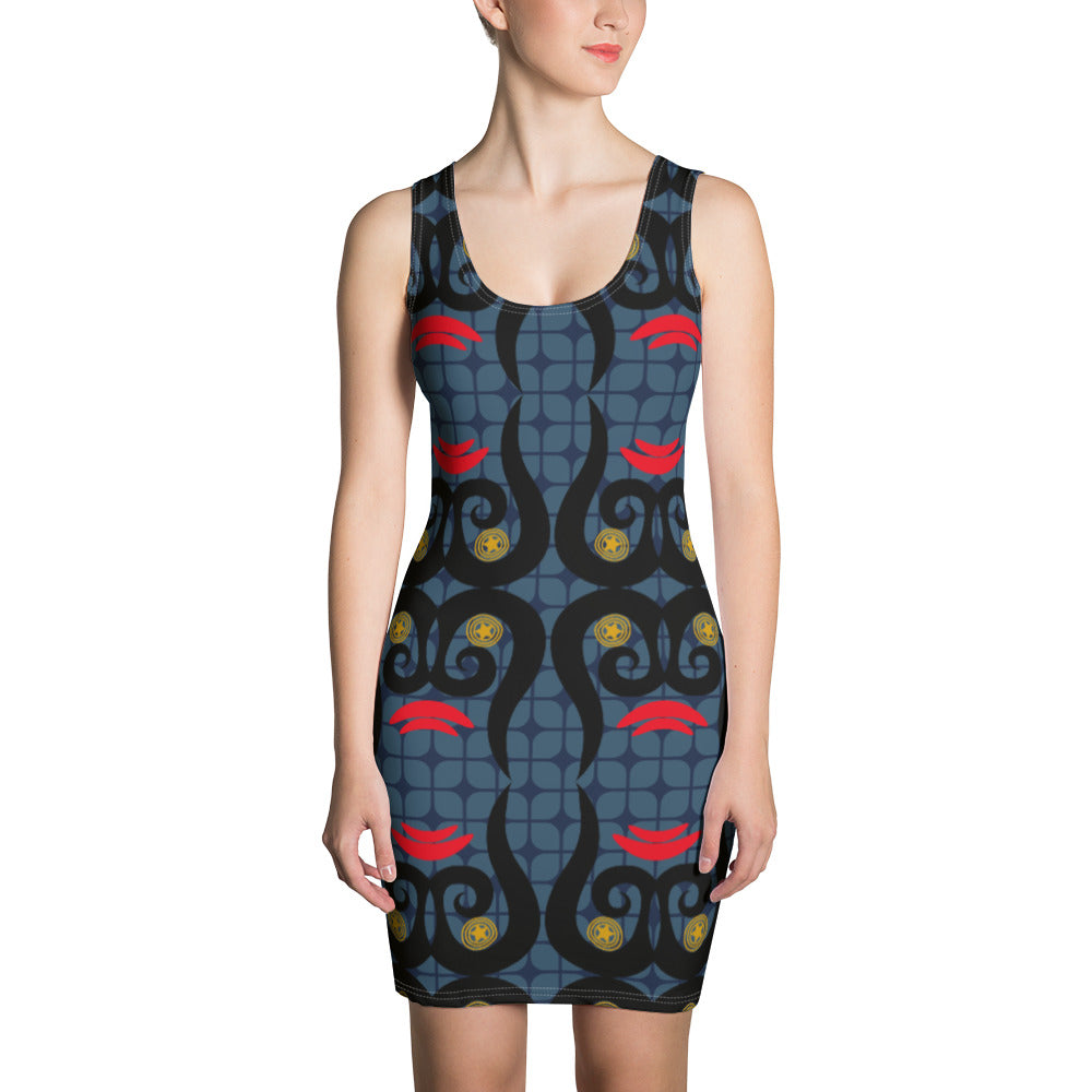 全面プリントのぴったりフィットのワンピースで大胆な着こなしを楽しみましょう。