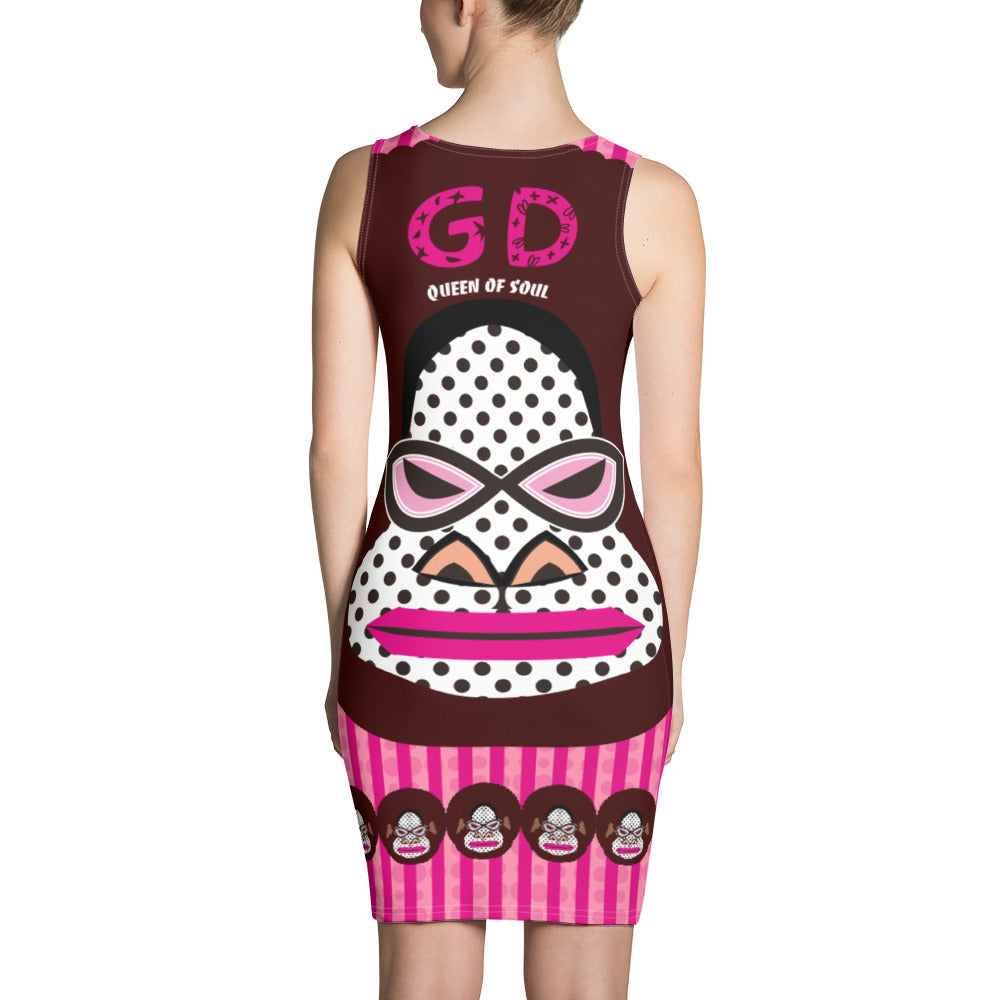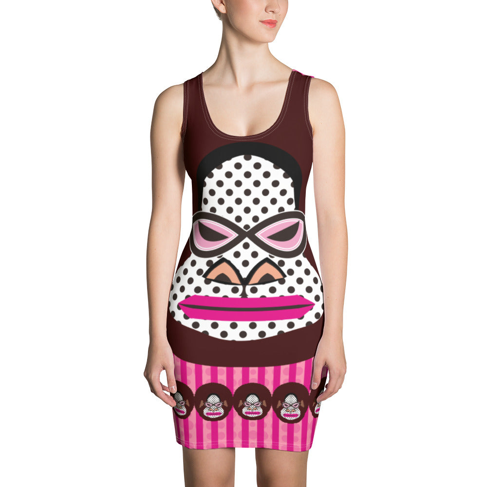 昇華プリントカットソーワンピース・アフロゴリラダダGDピンクライン【CA076- CSOP018】