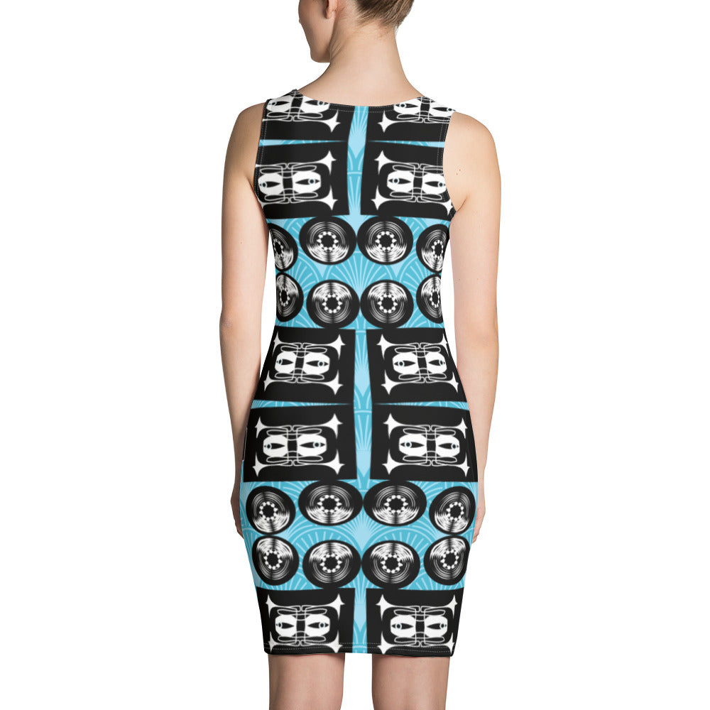 全面プリントのぴったりフィットのワンピースで大胆な着こなしを楽しみましょう。