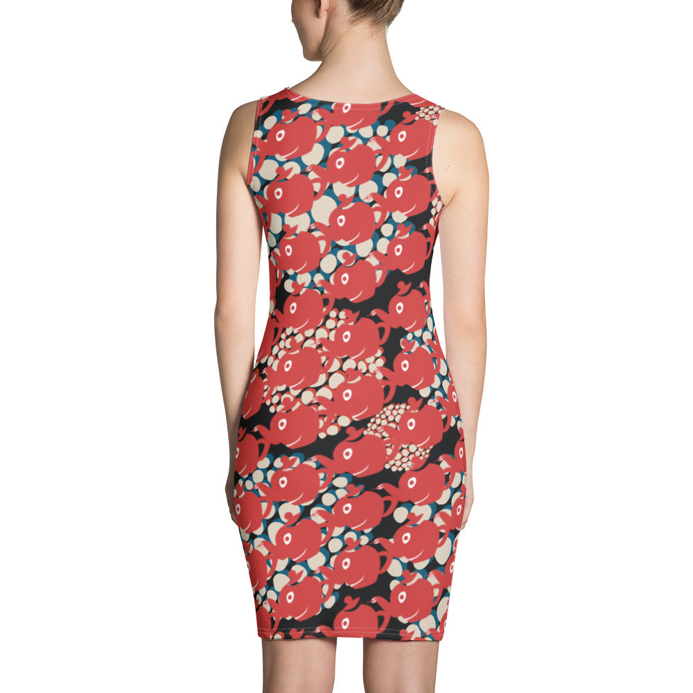 全面プリントのぴったりフィットのワンピースで大胆な着こなしを楽しみましょう。