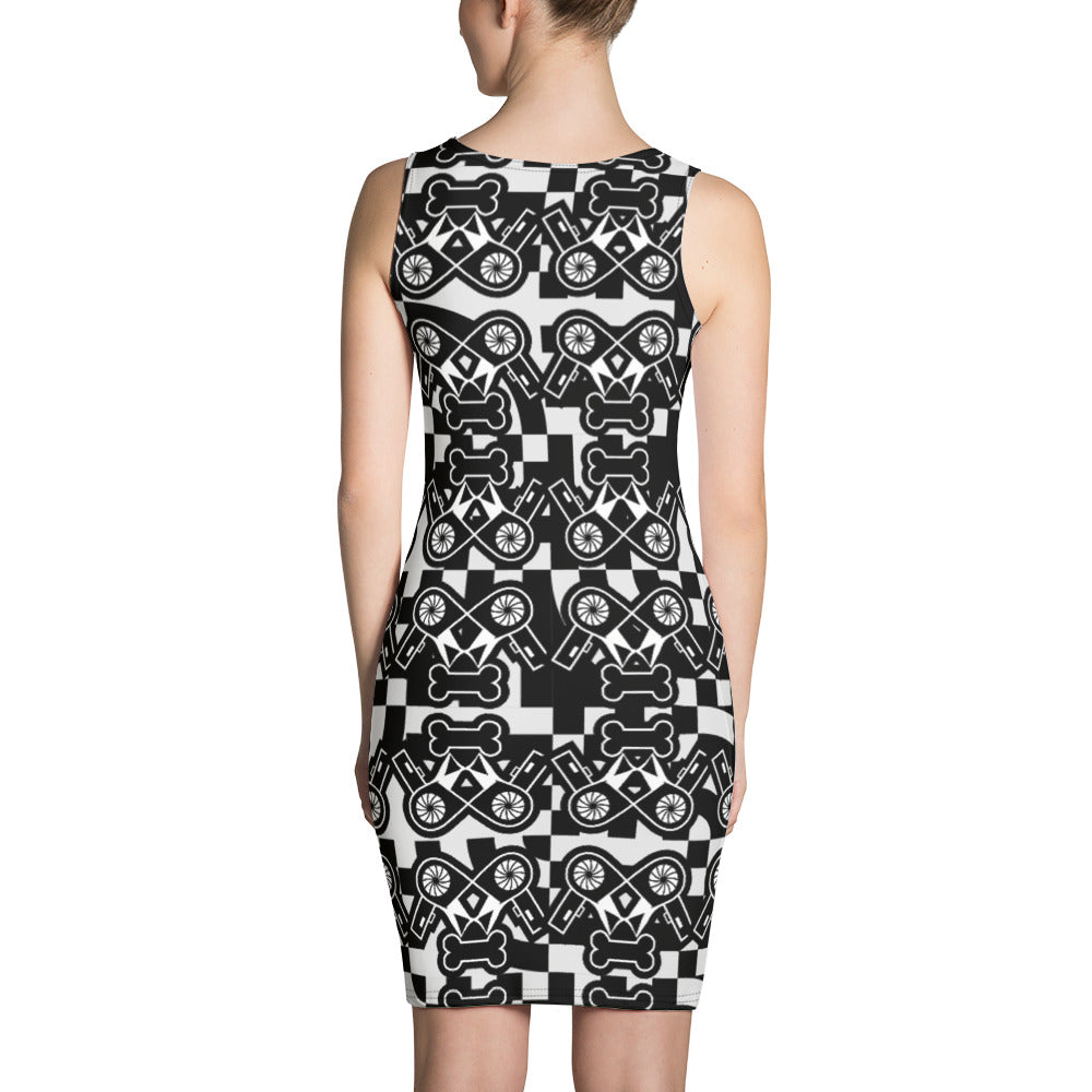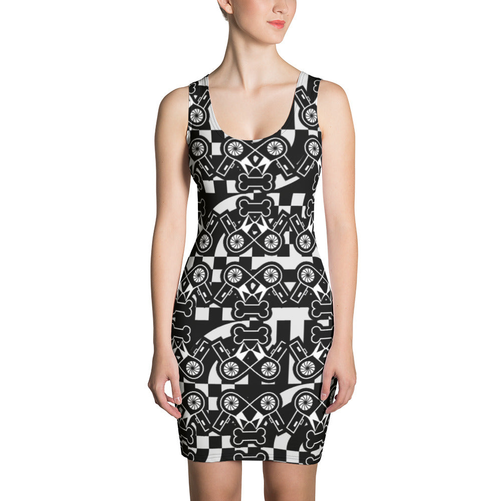 全面プリントのぴったりフィットのワンピースで大胆な着こなしを楽しみましょう。