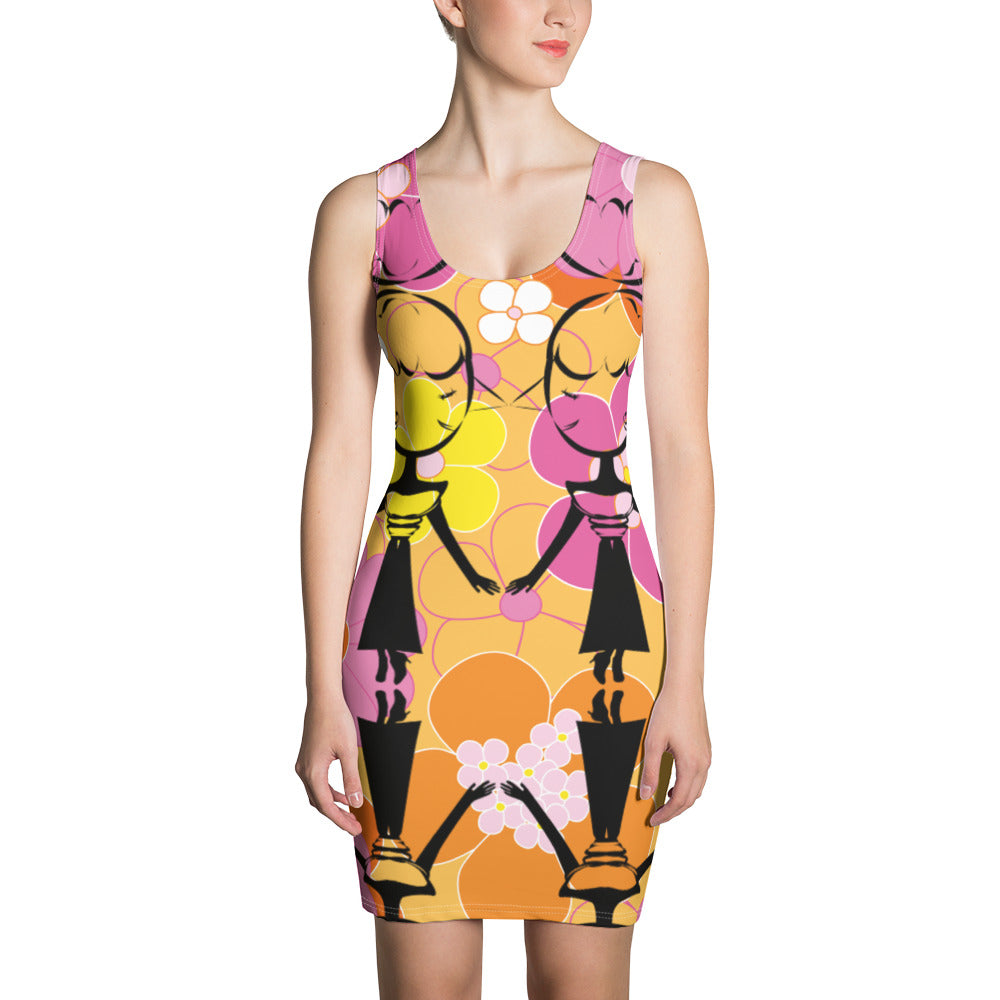 全面プリントのぴったりフィットのワンピースで大胆な着こなしを楽しみましょう。