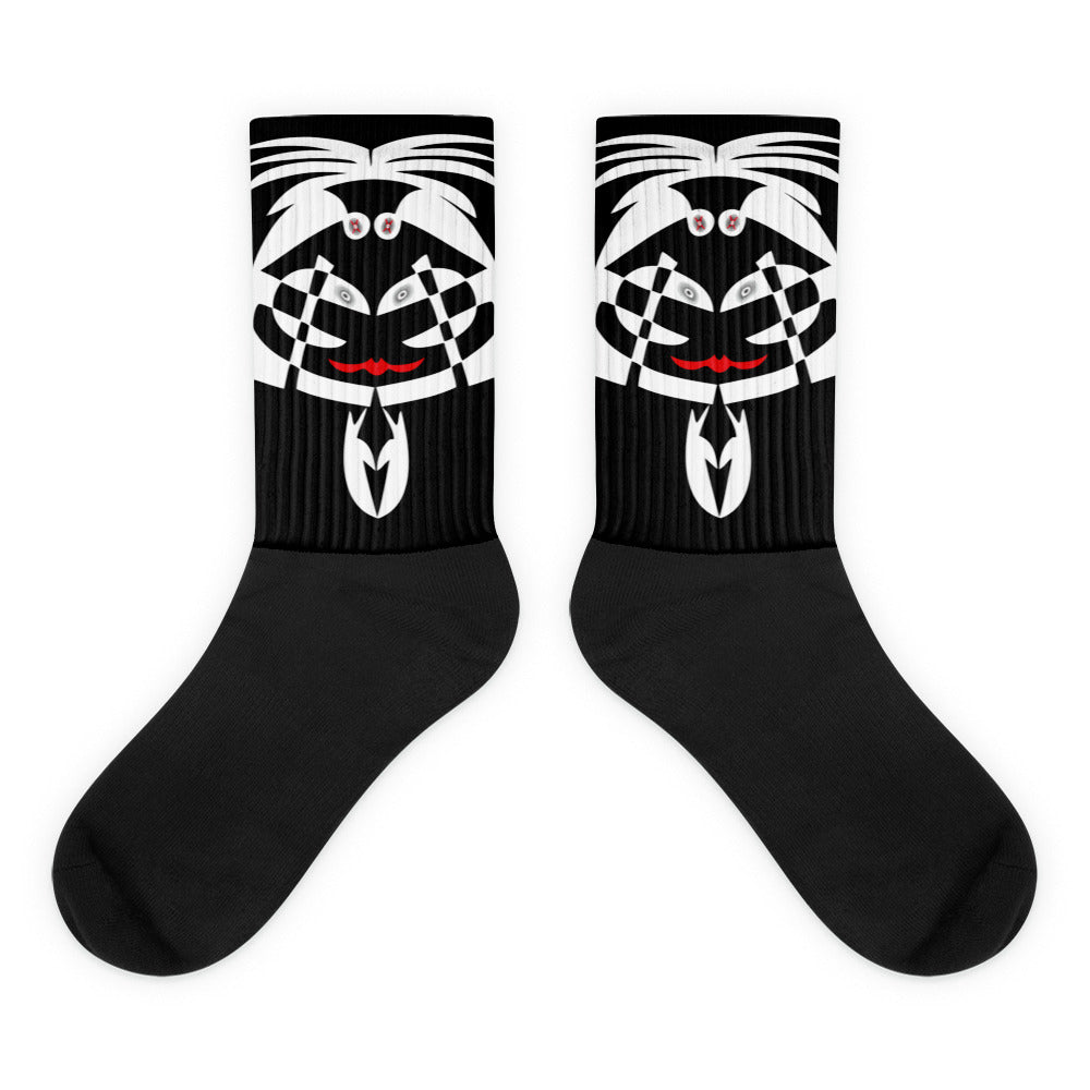 底の部分にクッション性があるためとても履き心地の良い靴下。足先は黒く、足首に沿って鮮やかで色褪せない色で印刷が施されます。