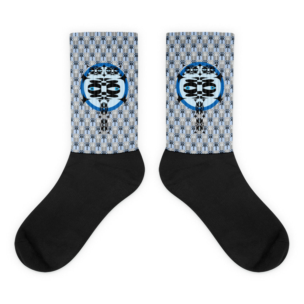 底の部分にクッション性があるためとても履き心地の良い靴下。足先は黒く、足首に沿って鮮やかで色褪せない色で印刷が施されます。