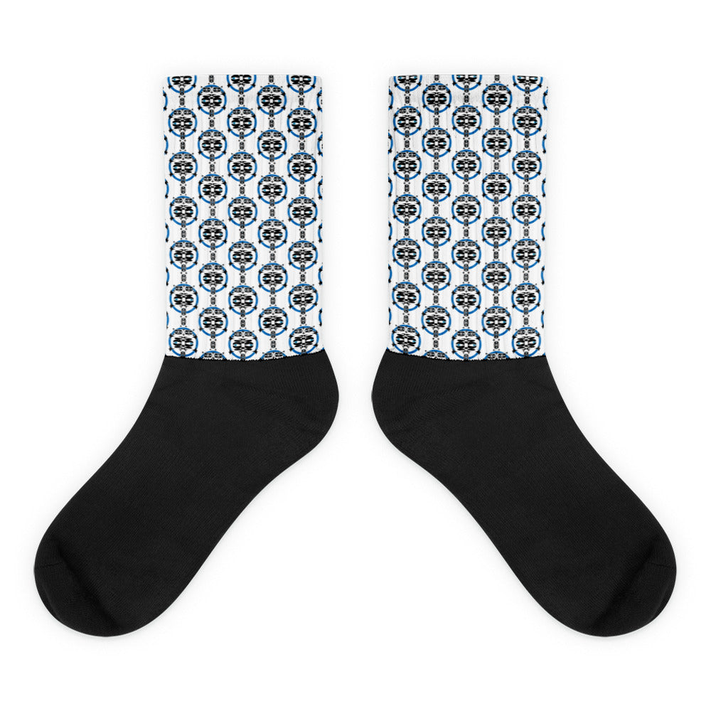 靴下・青輪イジドール模様白地【CA001- SC001】