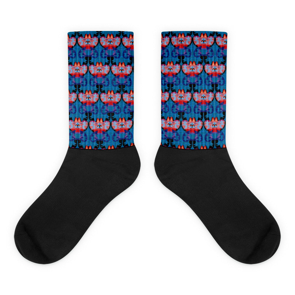 底の部分にクッション性があるためとても履き心地の良い靴下。足先は黒く、足首に沿って鮮やかで色褪せない色で印刷が施されます。