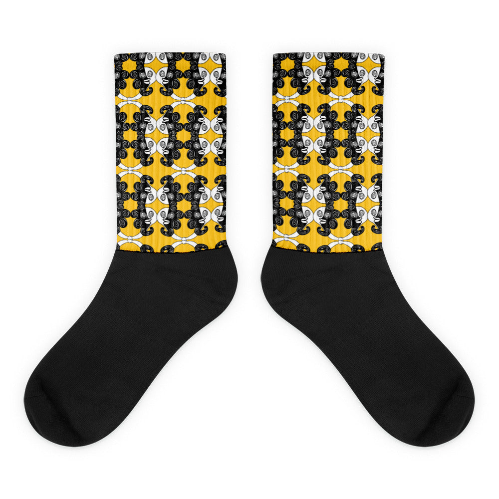 靴下・ラメコモノクロ模様黄地【CA002- SC015】