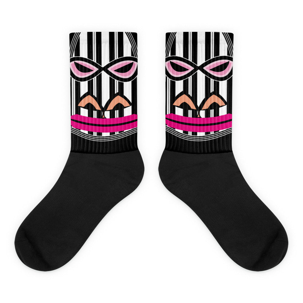 底の部分にクッション性があるためとても履き心地の良い靴下。足先は黒く、足首に沿って鮮やかで色褪せない色で印刷が施されます。