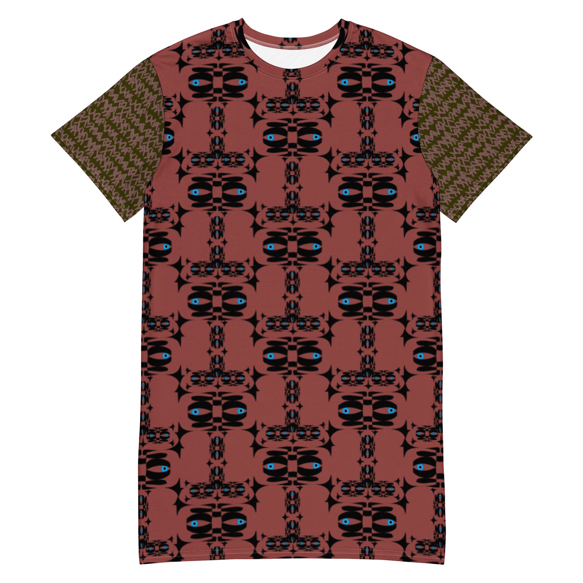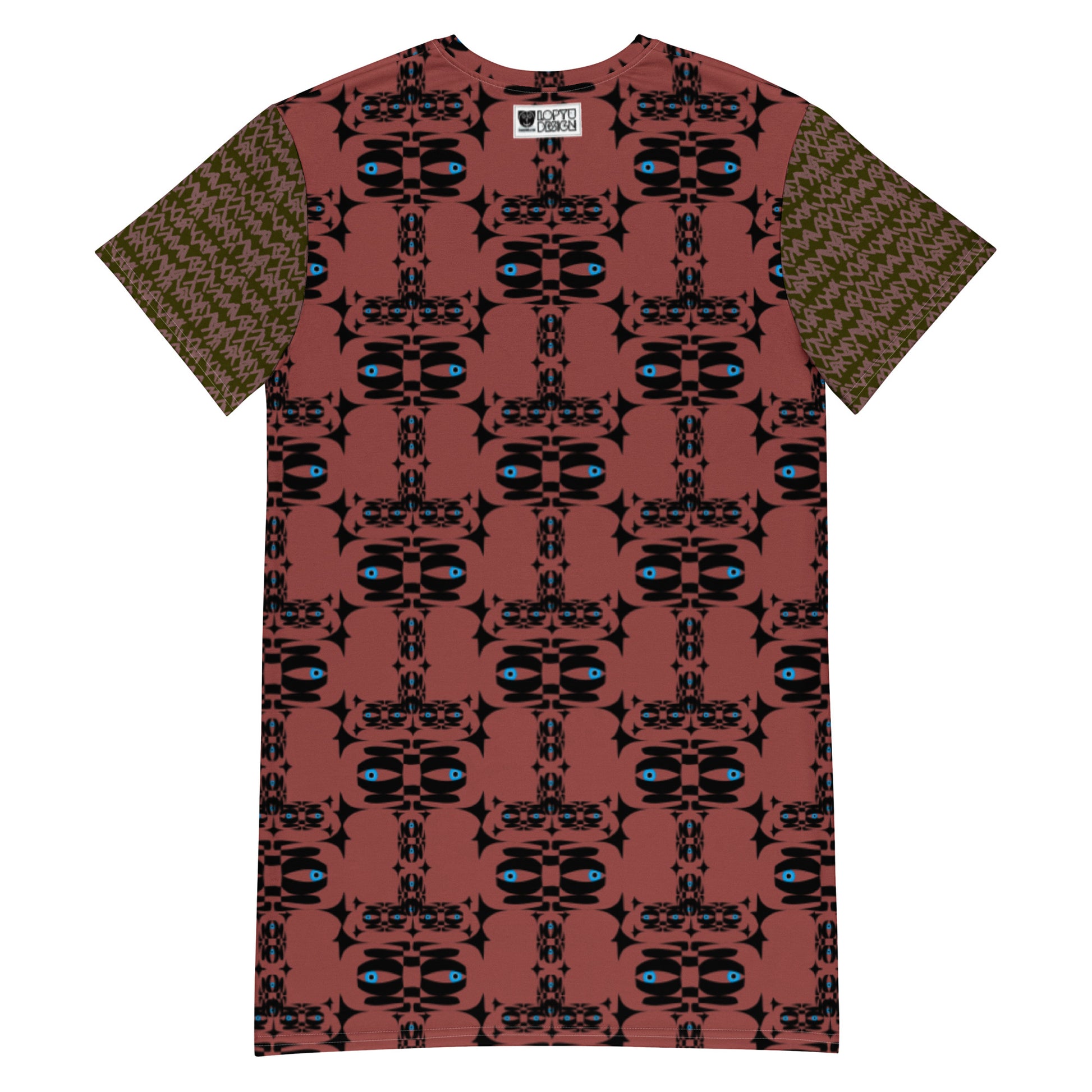 Tシャツワンピース・イジドール模様テラコッタ【CA001- TOP003】