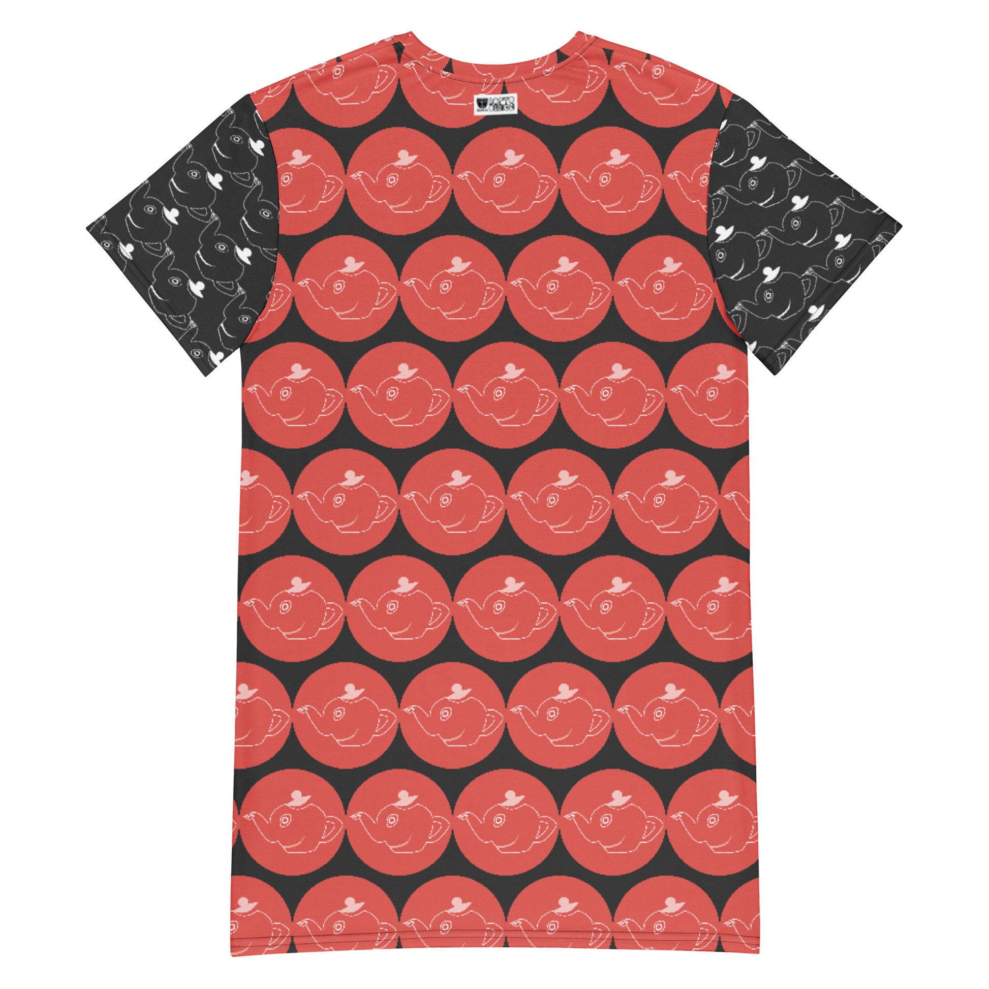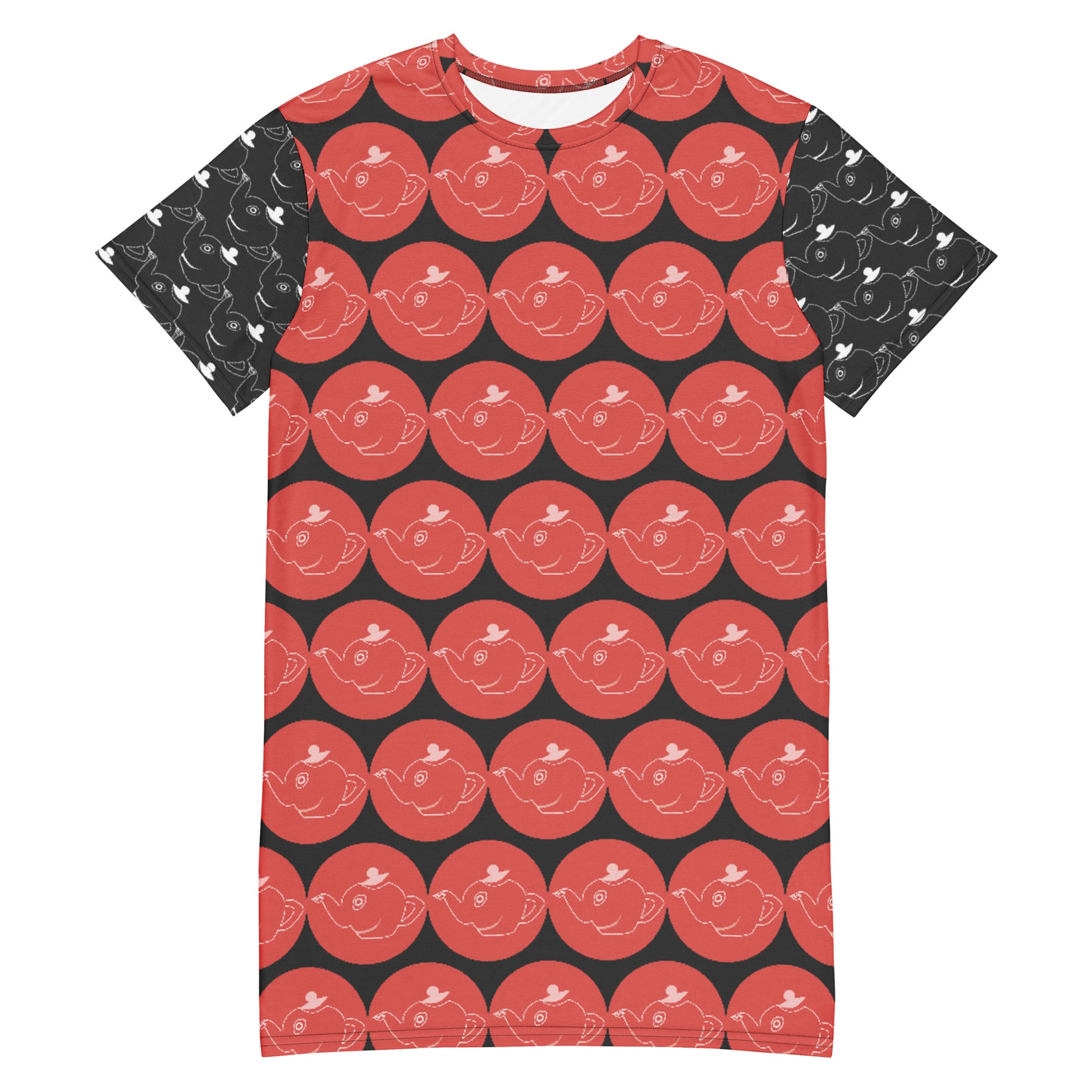 Tシャツワンピース・ロピュズカフェ赤ロゴ模様グレー【LC001- TOP017】